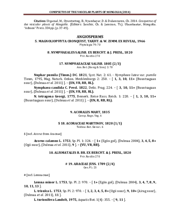Pdf Nymphaeaceae Xanthorrhoeaceae In Conspectus Of The Vascular Plants Of Mongolia 2014 Pdf Urgamal Magsar Academia Edu